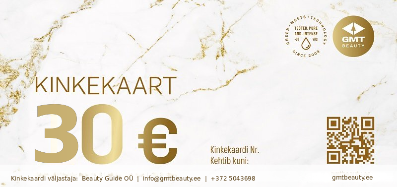Kingitus, millega ei pane kunagi mööda. Vali GMT Beauty e-poe digitaalne kinkekaart ja lase kingisaajal valida ise – täpselt tema naha vajaduste ja soovide järgi. Kinkekaart 30 € – praktiline valik uute lemmiktoodete katsetamiseks.