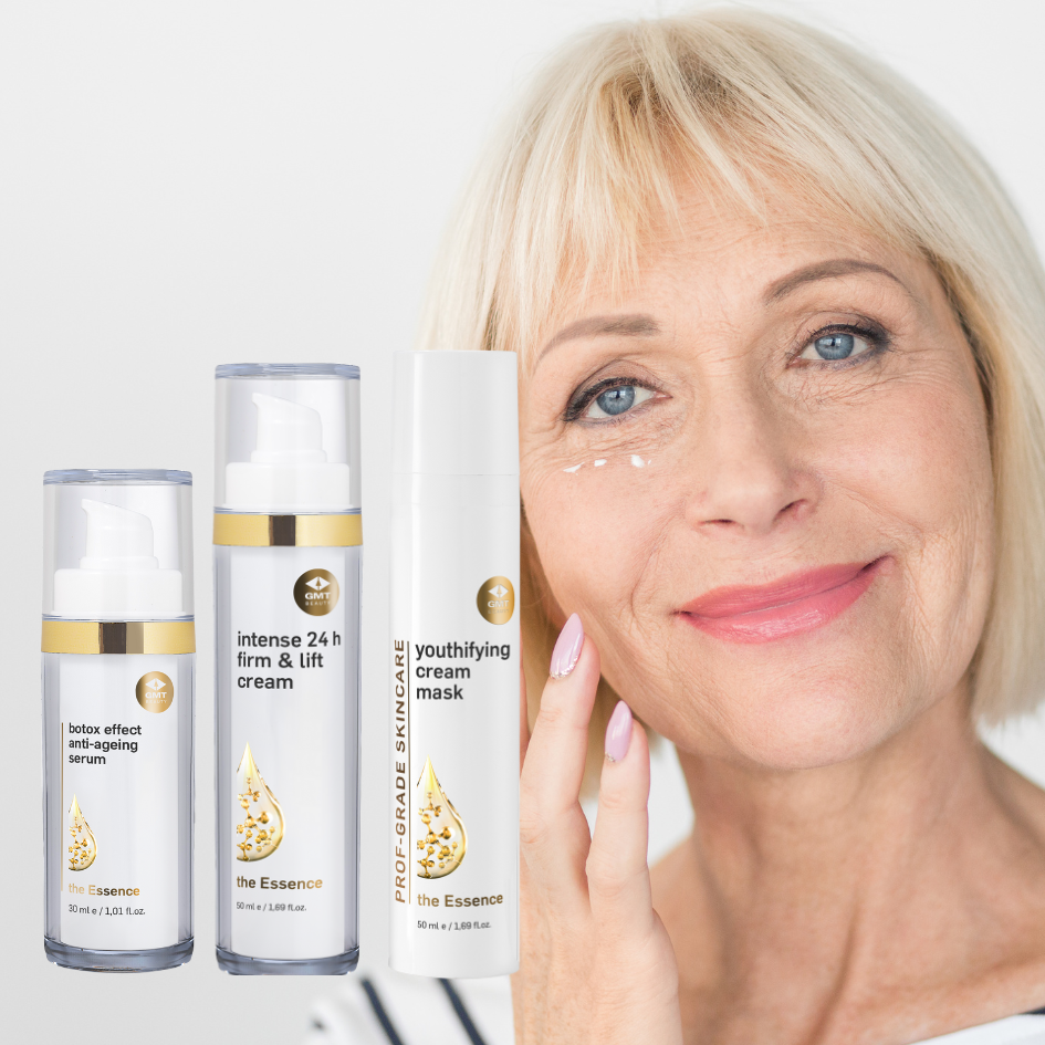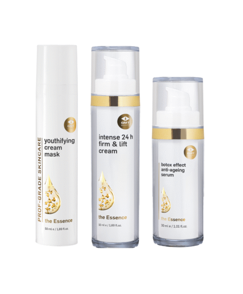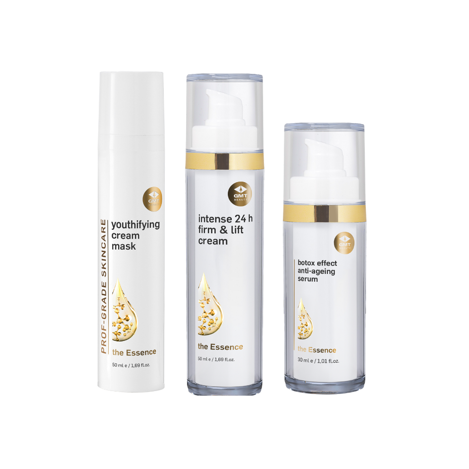 the Essence Intensiivne vananemisvastane näohoolduse komplekt (50+) on eksklusiivne näohoolduse komplekt küpsele nahale, mis vajab sügavat hoolt, elastsuse taastamist ning näokontuuride tugevdamist. Kolmest profikosmeetika tasemel tootest koosnev komplekt ühendab kaasaegse biotehnoloogia, merelise päritoluga aktiivained ning võimsad antioksüdandid, luues tõhusa igapäevase vananemisvastase ilurituaali.