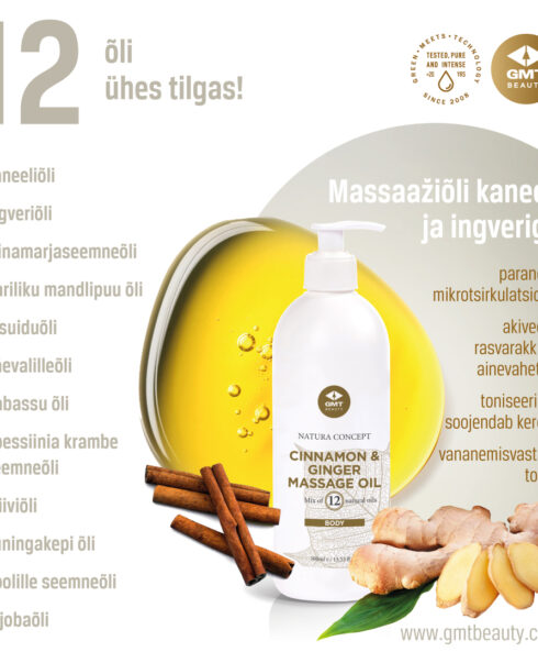Massaažiõli kaneeli ja ingveriõliga (CINNAMON & GINGER MASSAGE OIL)