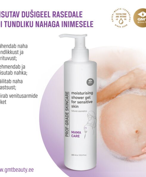 .Õrnatoimeline dušigeel tagab erilise loodusliku hoolduse tundliku nahaga rasedale ja rinnaga toitvale naisele. Geel puhastab, pehmendab ja niisutab nahka õrnalt ning vähendab imeliselt tundlikkust, säilitab elastsuse ja vähendab oluliselt venitusarmide tekke ohtu.