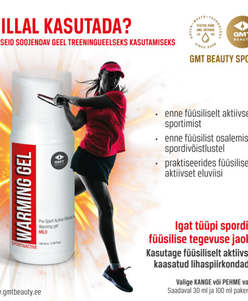 Tulemus: Meie tooted pakuvad tugevat (Pre-Sport Active Muscle Warming Gel Strong) või pehmet (Pre-Sport Active Muscle Warming Gel Mild) soojendavat toimet. Toimeained tagavad lihaskoe ja sidemete püsiva soojendamise, soodustavad vereringet ning suurendavad lihaste ja sidemete hapnikusisaldust. Aktiveerib rakkudes keemilised protsessid, mis annavad energiat, parandab lihaste paindlikkust ja vähendab traumaohtu.